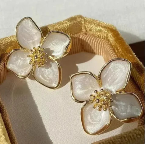These metal earrings feature a delicate flower design with a dripping oil finish. Available in white, red, and green, they offer a simple yet elegant touch for any outfit. Perfect for adding a subtle, feminine detail.